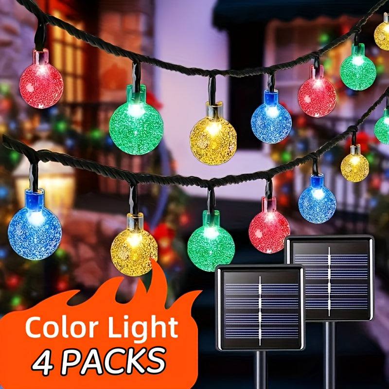 Transform your outdoor space with 2-pack 78-foot solar string lights—200 crystal-ball LEDs that create a dreamy, energy-saving atmosphere for weddings, patios, and camping.