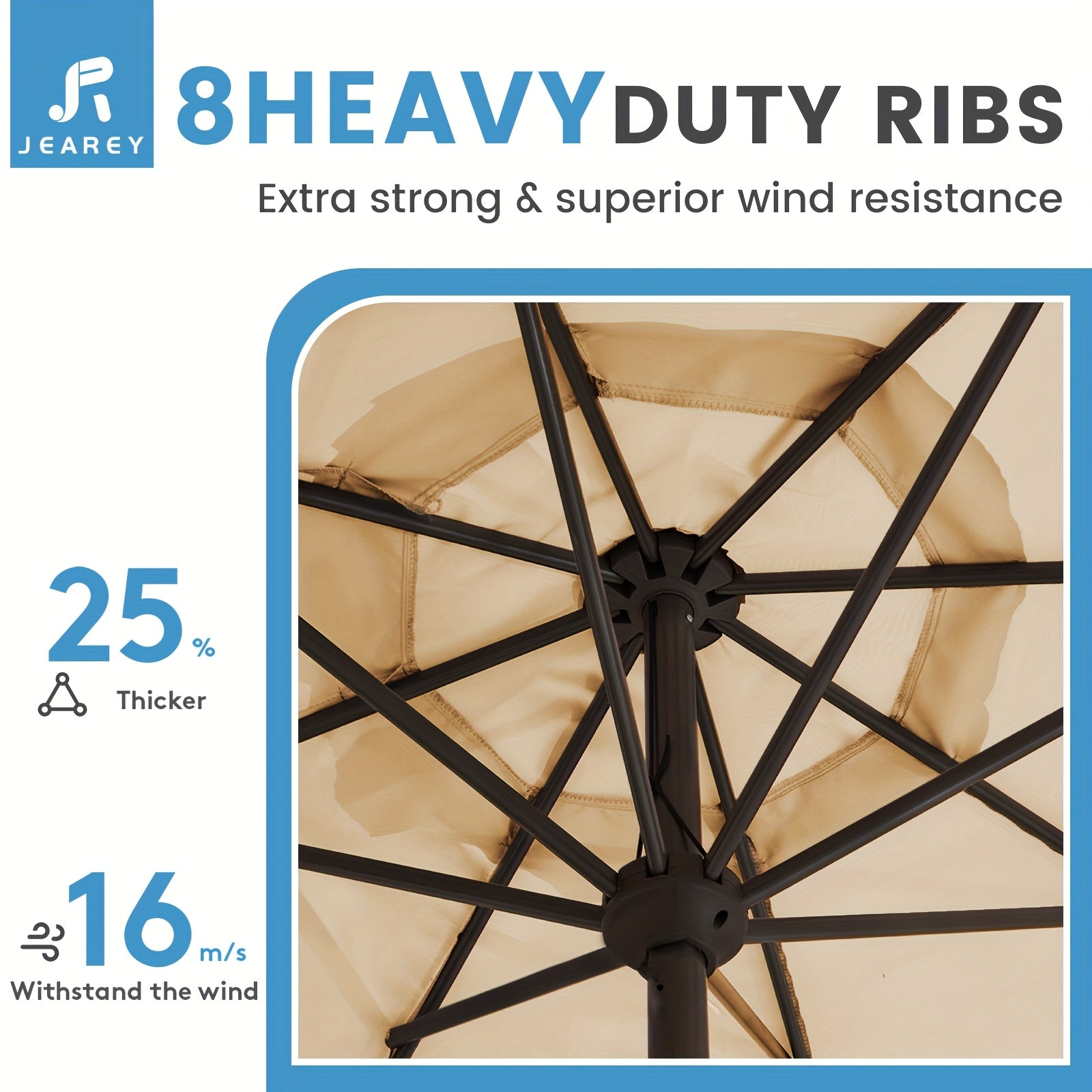 - Durable design: 8 sturdy iron ribs provide wind-resistant stability for patios, decks, and poolside areas.